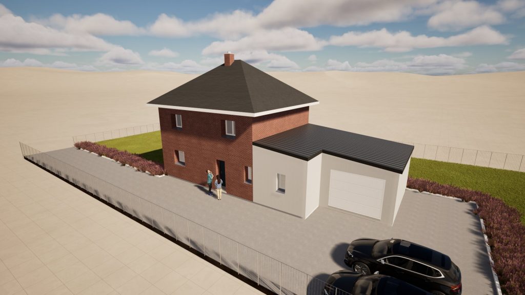 Permis de construire actuellement en cours d’instruction pour une maison individuelle articulée autour de deux volumes clairement identifiés.
